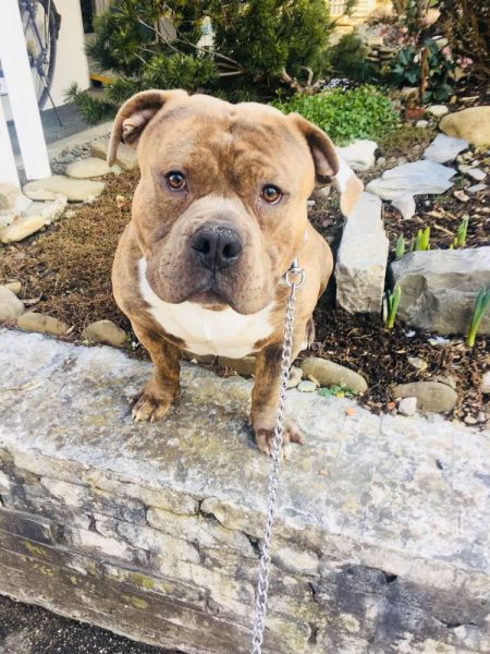 Ableton est un superbe mâle american bully de 3 ans. Il s'entend très bien avec ses congénères, les chats et adore la compagnie des enfants de tous âges. C'est un magnifique "bébé" de 32kg, tout en muscle et en douceur. Ableton devra être encore castré.