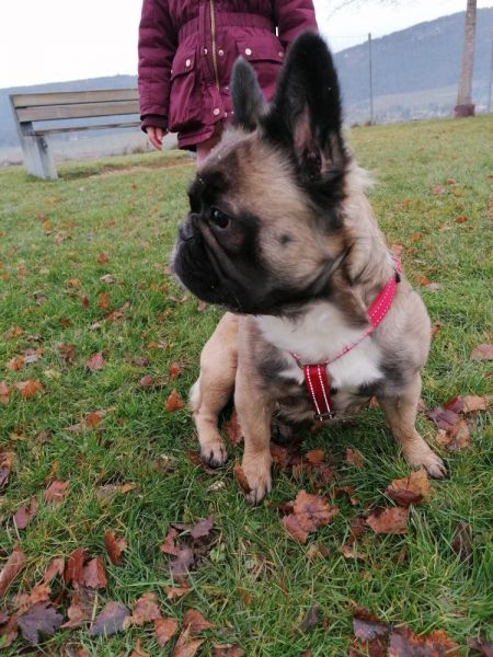 Donna est une jeune femelle bouledogue français à poils longs, fauve, de 2 ans qui aime avant tout la présence des humains et les câlins et qui ne supporte pas la solitude. Elle est très joueuse, un peu speed. Elle est ok congénères et adore les enfants.En revanche, elle n'est pas ok chats. Donna devra encore être stérilisée.