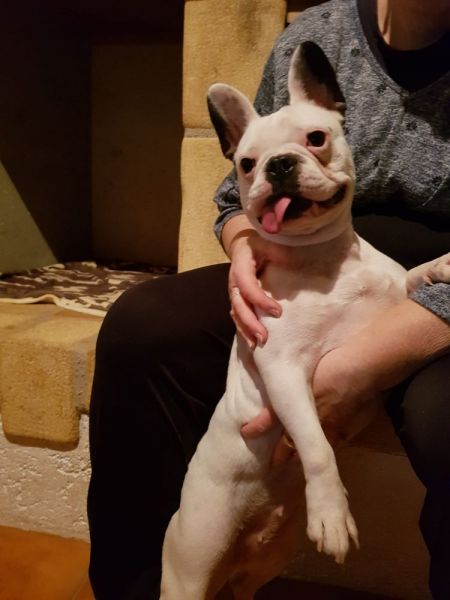 India est une femelle bouledogue français de 2 ans 1/2, stérilisée, C'est une bouledogue français super affectueuse, joueuse qui est en famille d'accueil avec plusieurs chiens. Elle est très réactive sur différentes situations qui confirment qu'elle manque de socialisation et d'éducation. Avec les humains elle est d'abord craintive mais se laisse assez rapidement mettre en confiance. Sinon elle est en bonne santé générale. Sa famille d'accueil a décidé de l'adopter définitivement en janvier 2020.