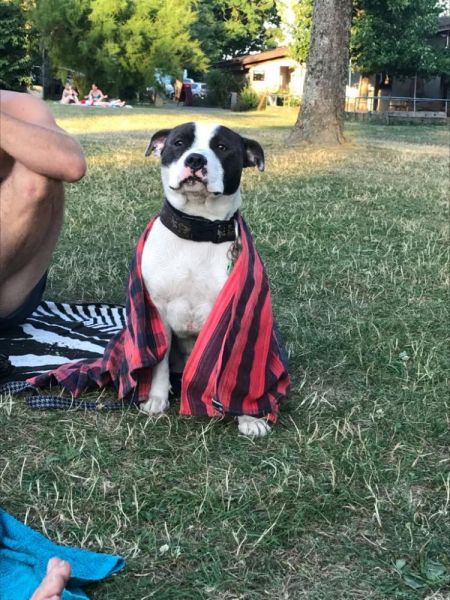 Sky est un adorable Staffordshire Bull Terrier (Staffie) de 3 ans, blanc et bleu, pas encore castré. C'est un chien super sympa, ok congénères et qui a l'habitude des enfants. En revanche, Sky ne connaît pas les chats. Comme tous les staffies, Sky aura plutôt besoin d'une famille assez active pour lui permettre de pouvoir bien se dépenser. Sinon il est en bonne santé générale.