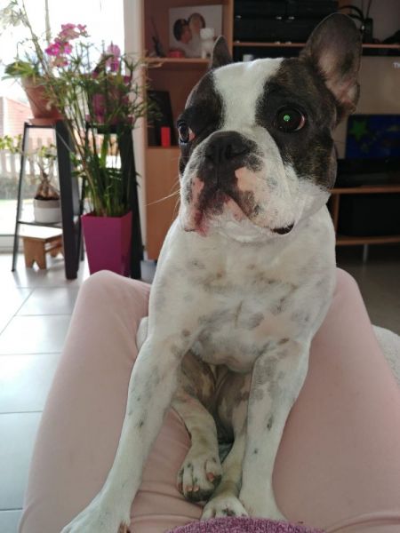 Daya est une jeune femelle bouledogue français, caille, d'à peine une année. Elle déborde d'affection et d'énergie et son éducation est à reprendre. Elle ne connait pas les chats mais s'entend super bien avec ses congénères. Daya devra encore se faire stériliser, sinon elle est en bonne santé générale.